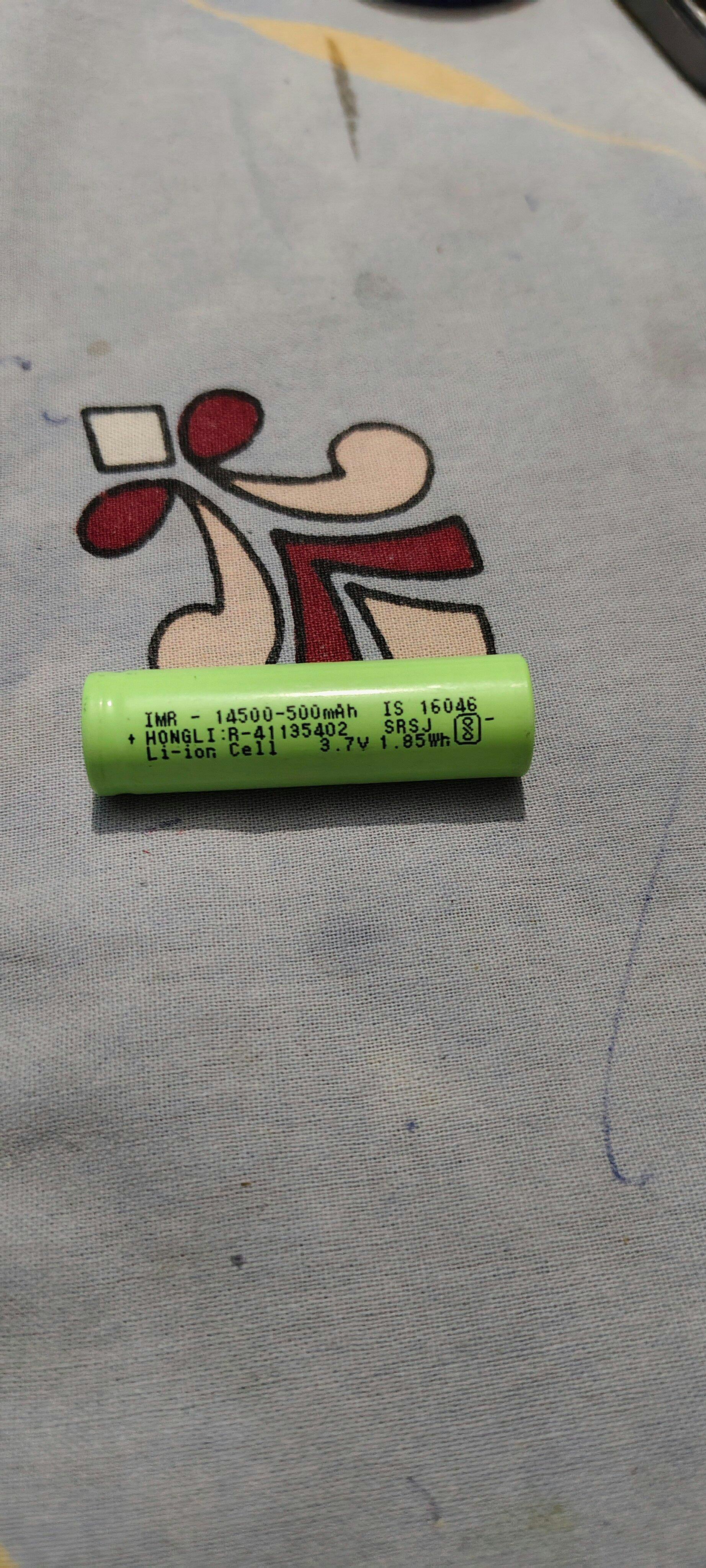 - Genuine Hongli 14500 Li-ion cell with 500mAh capacity